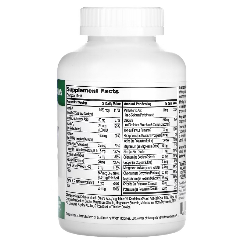 Cellulose, starch, stearic acid, polyvinyl alcohol, titanium dioxide, silicon dioxide, croscarmellose sodium, PEG, talc, magnesium stearate, citric acid, artificial color added (FD&C yellow #6).
