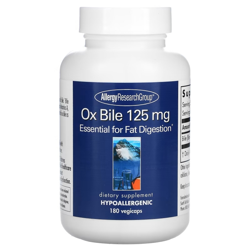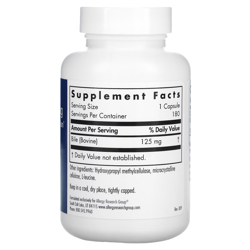 Описание добавки Allergy Research Group Желчь крупного рогатого скота 125 мг 180 растительных капсул