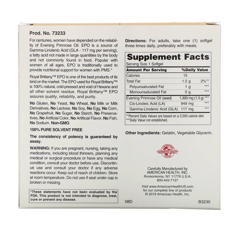 Купить American Health, Royal Brittany, масло примулы вечерней (EPO), 1300 мг, 2 флакона, 120 желатиновых капсул в каждом флаконе – цена 5150 ₽, заказать с доставкой в Ростов-на-Дону | Интернет-магазин rostov-na-donu.fakeoff.ru