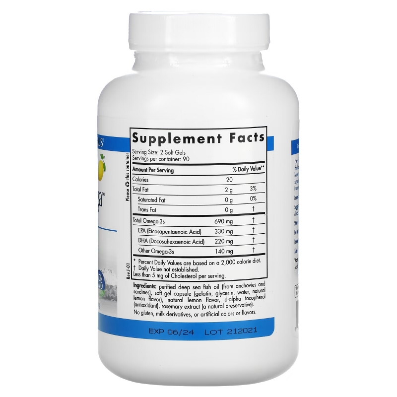 Purified deep sea fish oil (from anchovies and sardines), soft gel capsule (gelatin, glycerin, water, natural lemon flavor), natural lemon flavor, d-alpha tocopherol, rosemary extract (a natural preservative).