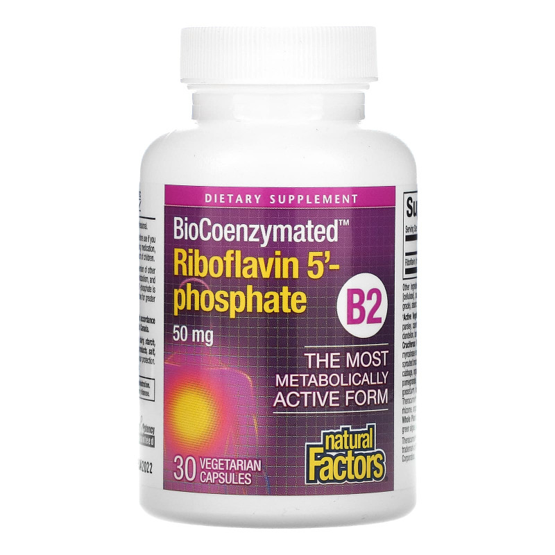 Рибофлавин (витамин B2) играет важнейшую роль в активировании и конверсии других форм витамина B, а также при синтезе красных кровяных телец, метаболизме жиров и глюкозы, производстве и регуляции некоторых биохимических соединений. . Рибофлафин 5'-фосфат — коферментная форма витамина B2. Прием рибофлафина 5'-фосфата повышает усваиваемость и биодоступность не-коферментных форм.