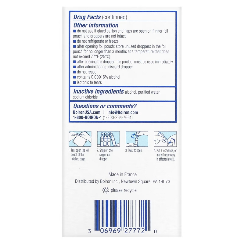 Компоненты добавки Boiron, Optique 1, средство от раздражения глаз, 30 доз, 4,5 мл каждая