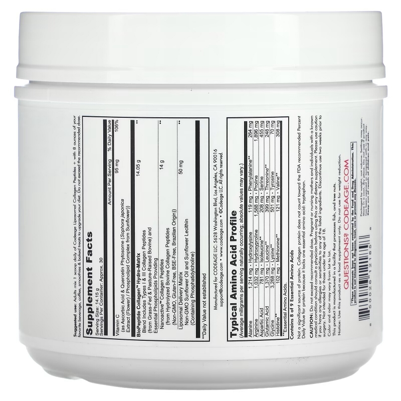 Улучшенная липосомальная добавка в виде порошка коллагена, сочетающая гидролизованный коллаген типа 1 и 3, витамин C, фитосомы кверцетина и фосфолипиды в одном питательном растворе в виде порошка из коллагена без добавок для женщин и мужчин.