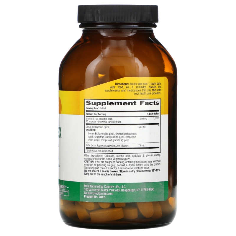 | Vitamin C (as ascorbic acid, rose hips) | 1,000 mg (1 g) | 1,667% |
