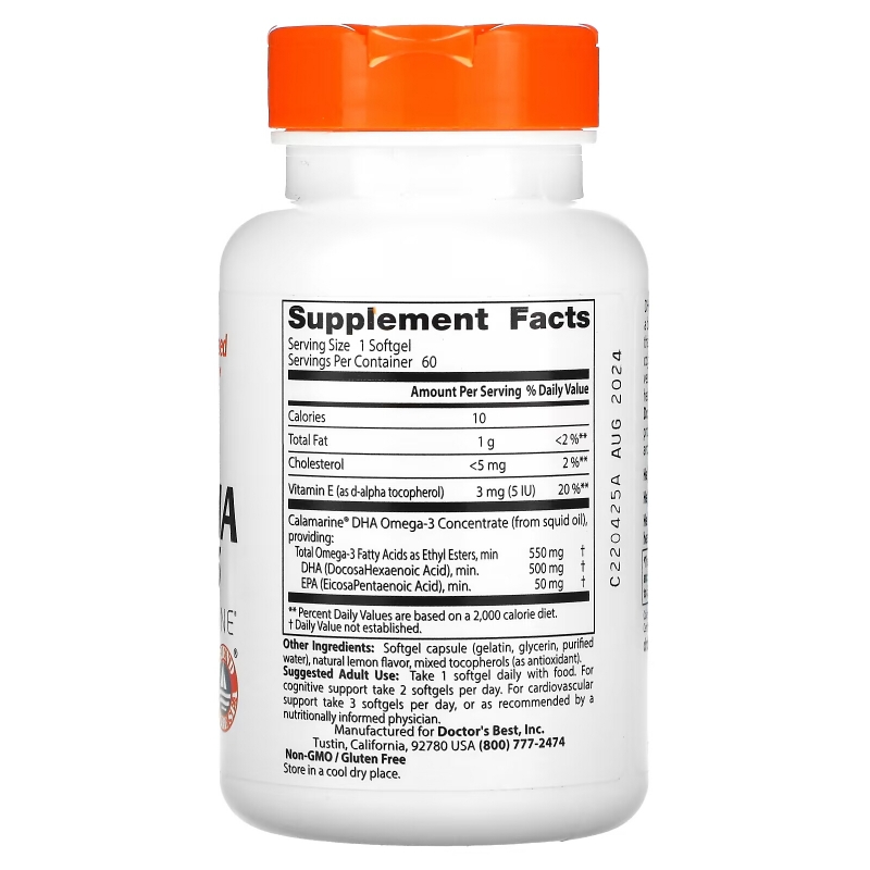 Doctor's Best ДГК 500 из кальмара (Best DHA 500 from Calamari) 500 мг 60 мягких таблеток