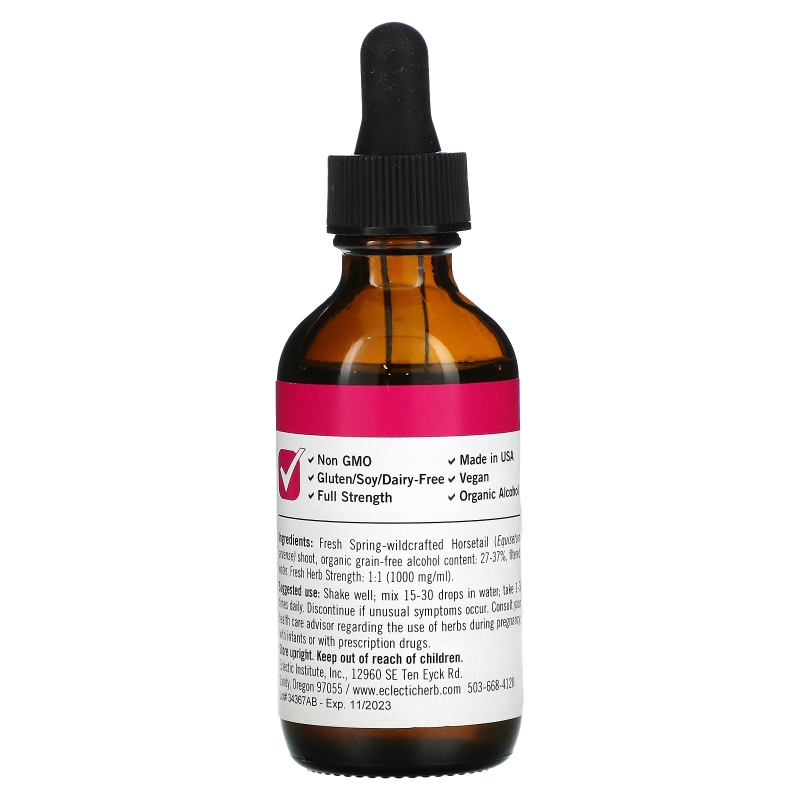 Описание добавки Eclectic Institute, Хвощ лесной, экстракт 2 жидких унции (60 мл)