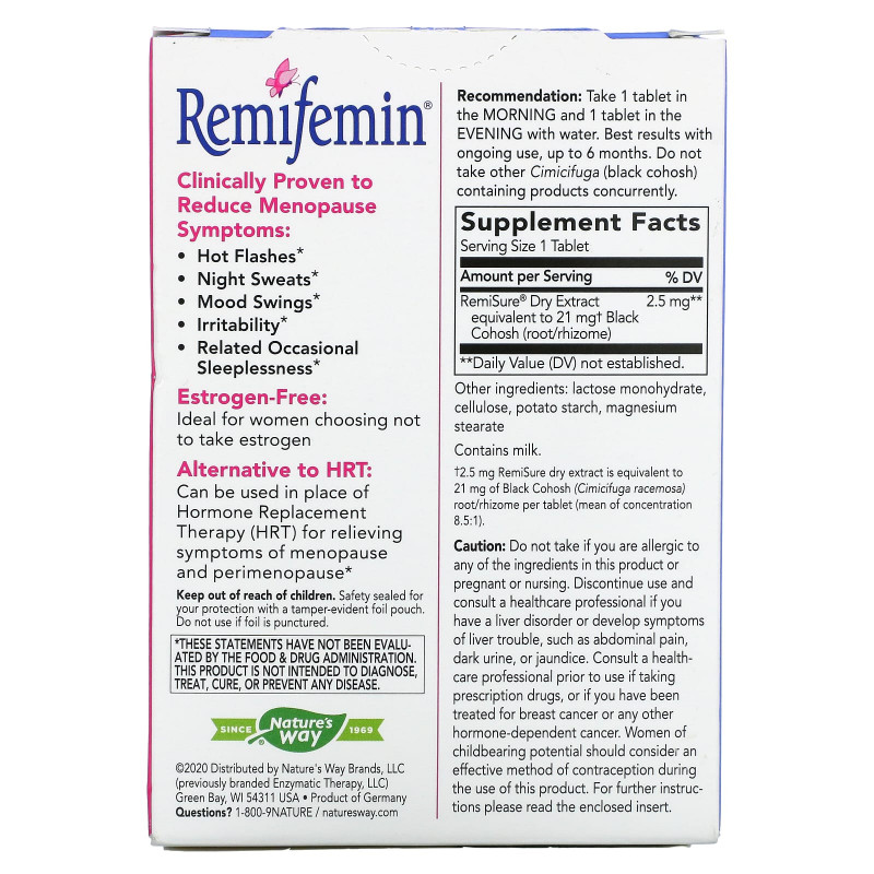 Enzymatic Therapy Ремифемин смягчение симптомов при перименопаузе и менопаузе 120 таблеток
