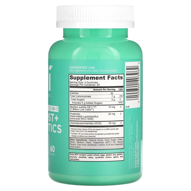 Знаете ли вы, что ~ 70% иммунной системы человека находится в кишечнике? Поэтому, когда дело доходит до здоровья кишечника, вам, вероятно, следует уделять ему максимум внимания. Встречайте первые в мире жевательные мармеладки с пробиотиком и 3-в-1! Если вам интересно, что все это значит, мы упростим его переваривание: пребиотики обеспечивают топливо для пробиотиков, которые помогают поддерживать здоровье пищеварительной системы. Постбиотики - это стабильные штаммы бактерий, обеспечивающие иммунную поддержку. Впервые съесть их втроем в вкусной жевательной мармеладке? Это смелый шаг, который стоит отметить!