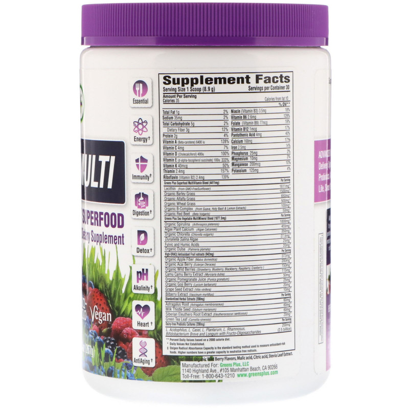 | Greens Plus Superfood MultiVitamin Blend | 3287 mg | |
