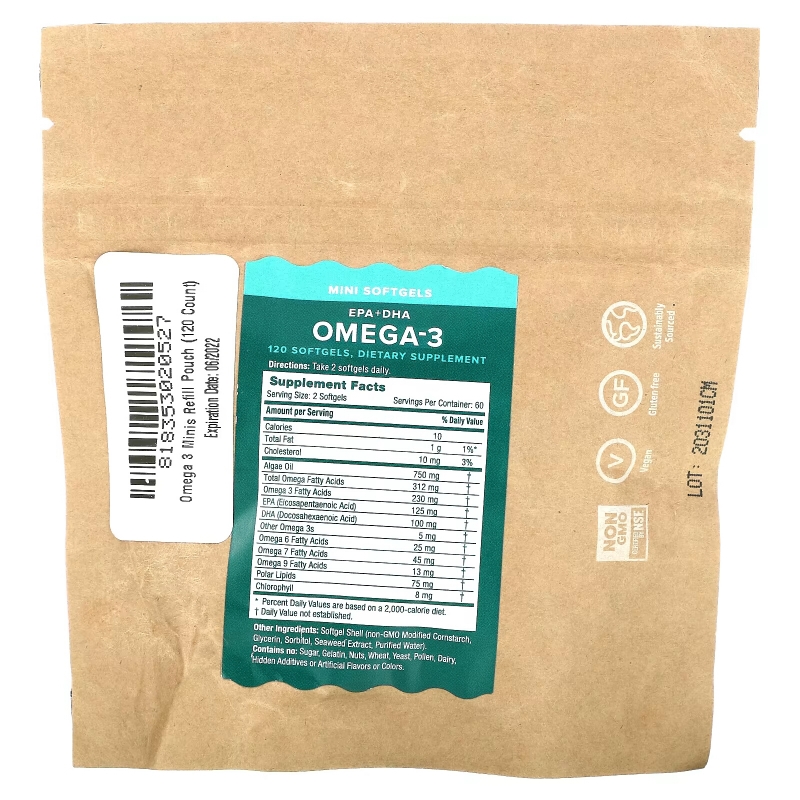 iWi, Omega-3 Mini Refill Pouch, EPA + DHA, 120 Softgels