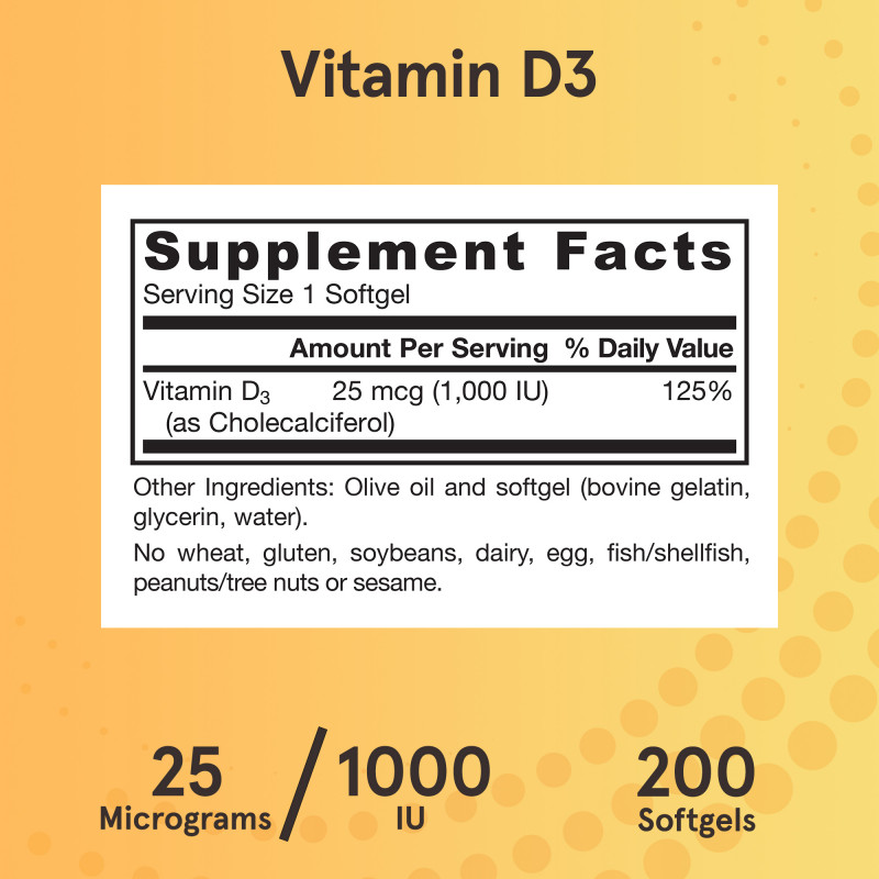 Jarrow Formulas Витамин D3  холекальциферол 1000 МЕ 200 мягких желатиновых капсул
