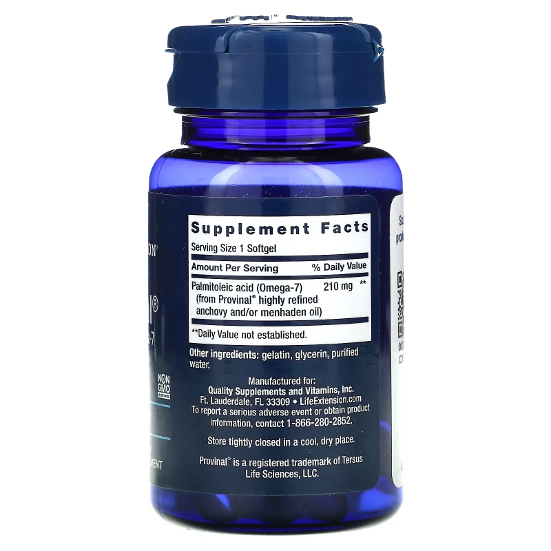 Life Extension Provinal Очищенная форма омега-7 30 гелевых капсул