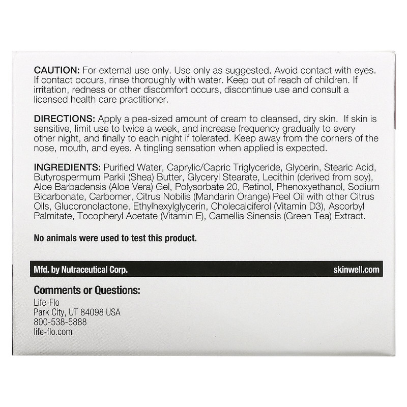 Нанести небольшое количество крема на очищенную, сухую кожу. Если кожа чувствительна, наносите не более двух раз в неделю, постепенно увеличивая количество нанесений до тех пор, пока не сможете наносить каждый вечер. Не наносите на крылья носа, вокруг рта и глаз. При нанесении может ощущаться покалывание.