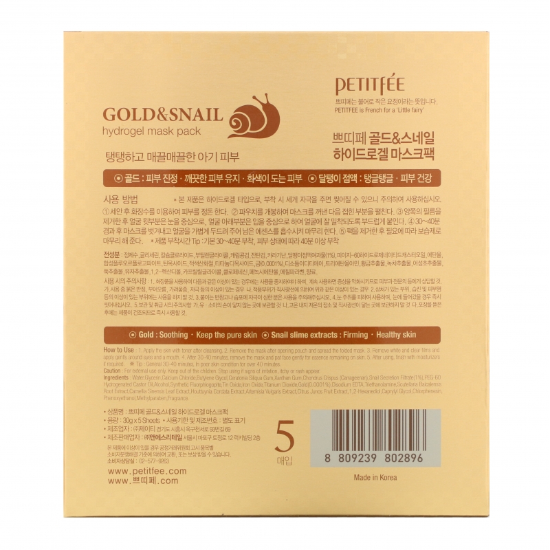 Купить Petitfee, Маски с гидрогелем и экстрактом секрета улитки, 5 масок, 30 г каждая – цена 3510 ₽, заказать с доставкой в Ростов-на-Дону | Интернет-магазин rostov-na-donu.fakeoff.ru