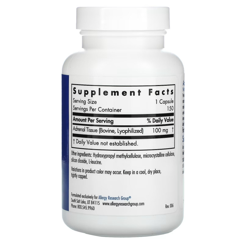 Компоненты добавки Allergy Research Group, Надпочечниковый препарат Натуральный железистый, 150 капсулы в растительной оболочке