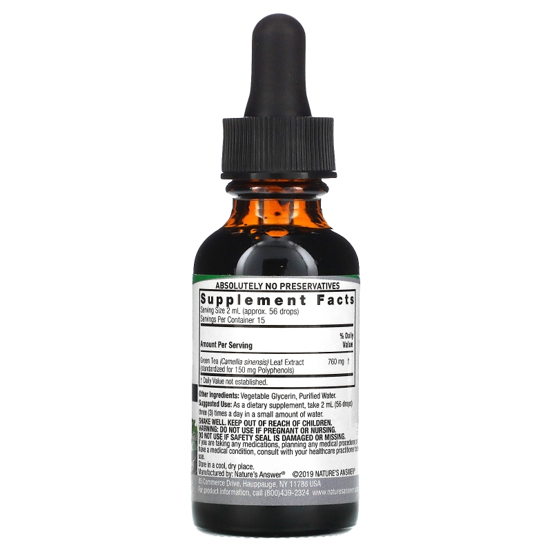 Nature's Answer, Экстракт Зеленого чая в каплях, природный антиоксидант без спирта, 1 жидкая унция (30 мл) – отзывы, купить с доставкой по Москве и России по цене выгоднее, чем в аптеке | интернет-магазин rostov-na-donu.fakeoff.ru