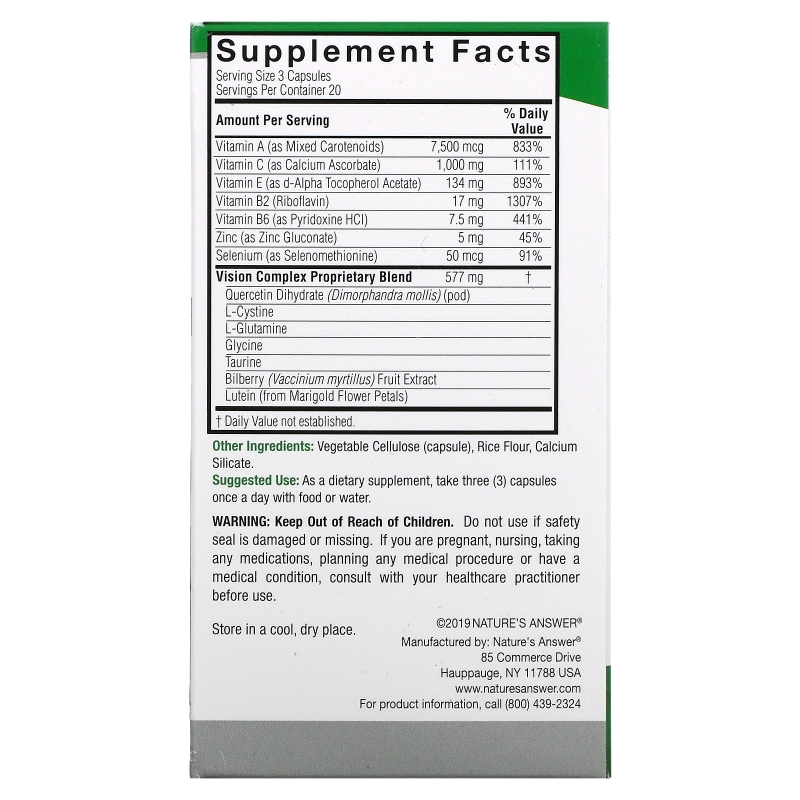 Nature's Answer, Комплекс для зрения из черники, 60 растительных капсул
