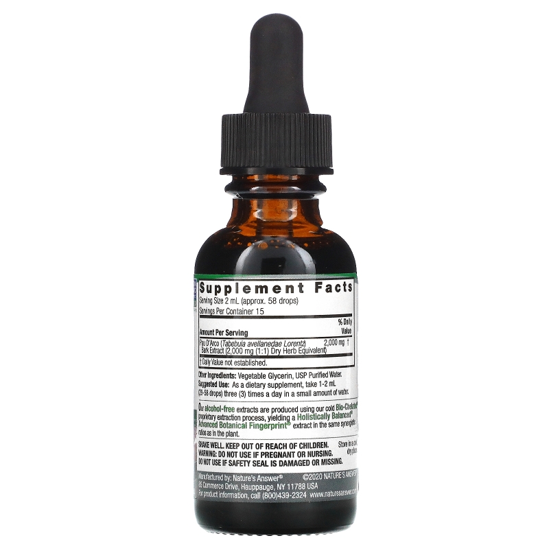 Описание добавки Nature's Answer, Розовое лапачо, без спирта, 2000 мг, 1 жидк. унц. (30 мл)