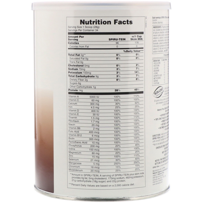 Nature's Plus Spiru-Tein энергетическая еда с высоким содержанием белка шоколадный вкус 2.1 фунтов (952 г) – отзывы, купить с доставкой по Москве и России по цене выгоднее, чем в аптеке | интернет-магазин rostov-na-donu.fakeoff.ru