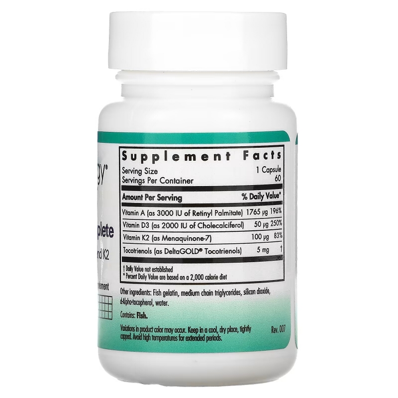 Полноценный витамин D3 сформулирован с мыслью о важном значении сбалансированных витаминов D и А. Он также содержит другие жирорастворимые витамины К2 (менахиноном-7) и токотриенолы DeltaGold (часть семейства витамина Е). Полноценный витамин D3 разработан для безопасного, долгосрочного ежедневного приема для большинства людей.