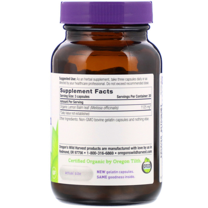 Компоненты добавки Oregon's Wild Harvest Мелисса без ГМО 90 растительных капсул