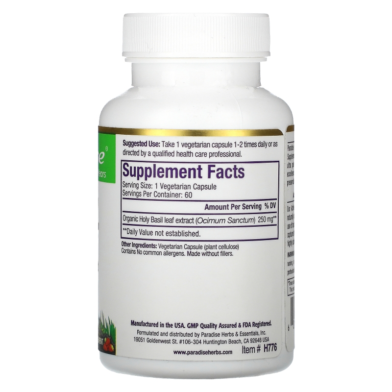 Paradise Herbs Органический Базилик Священный (Тулси) 60 овощных капсул – отзывы, купить с доставкой по Москве и России по цене выгоднее, чем в аптеке | интернет-магазин rostov-na-donu.fakeoff.ru