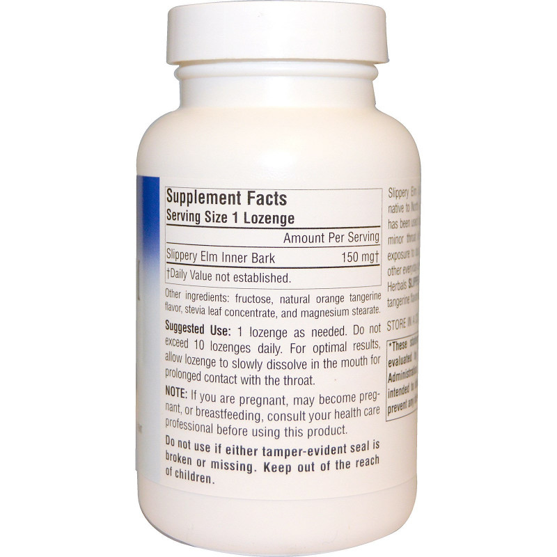 Slippery Elm (Ulmas Rubra) is a tree native to North America. The inner bark has been used for generations to soothe minor throat irritation associated with exposure to dust, excessive talking and other everyday activities. These Planetary Herbals Slippery Elm Lozenges are tangerine flavored for great taste.