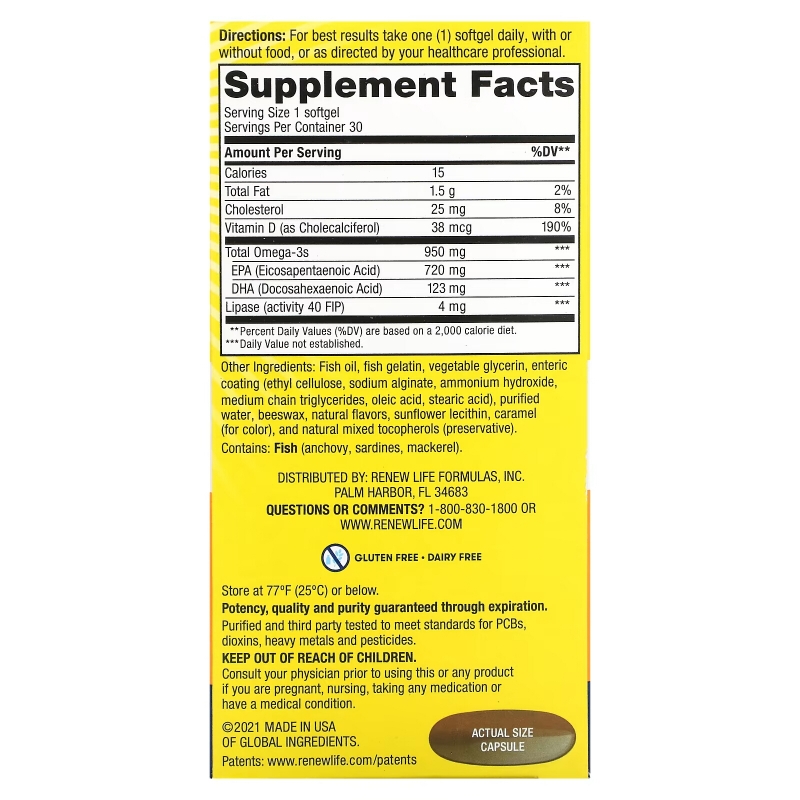 Renew Life Norwegian Gold Рыбий Жир Супер Необходимые Омега 30 гелевых капсул