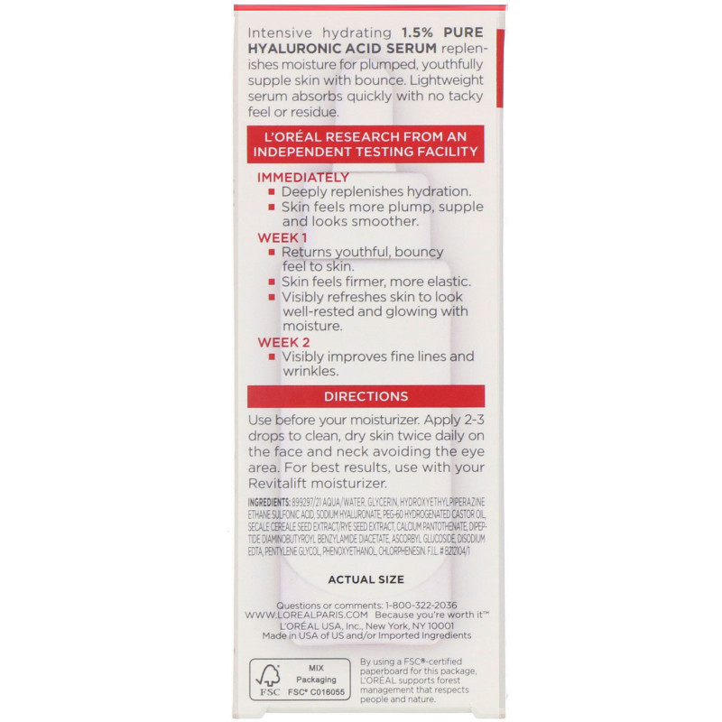 L'Oreal, Revitalift Derm Intensives, сыворотка с 1,5 % гиалуроновой кислотой, 30 мл
