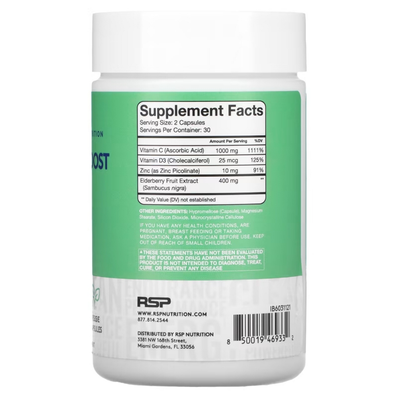 Описание добавки RSP Nutrition, Immunity Boost, Immune System Support + Vitamins & Antioxidants + Immune Cell Production, 60 Veggie Capsules