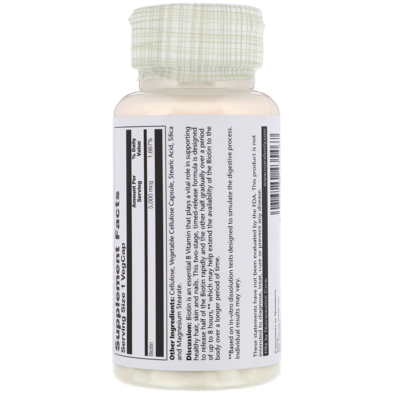 Описание добавки Solaray, Биотин, 5000 мкг, 60 вегетарианских капсул