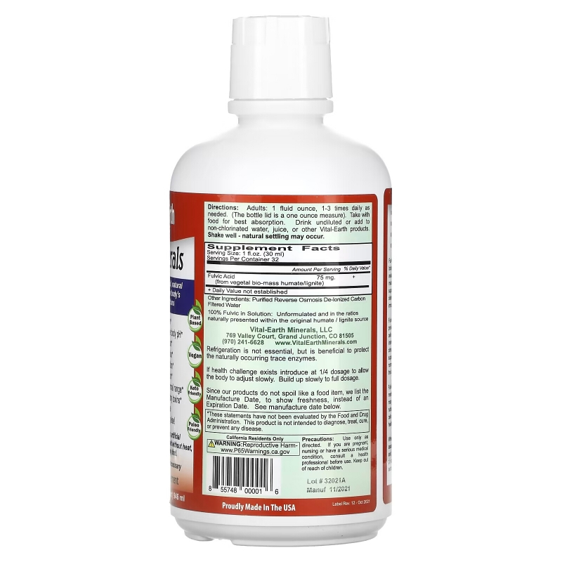 Vital Earth Minerals Фульвиевый минеральный комплекс пищевая добавка с ионами минералов 32 жидких унции (946 мл)