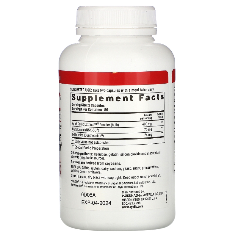 Wakunaga - Kyolic Экстракт Выдержанного Чеснока для Нормализации Кровяного Давления Формула 109 160 капсул – отзывы, купить с доставкой по Москве и России по цене выгоднее, чем в аптеке | интернет-магазин rostov-na-donu.fakeoff.ru