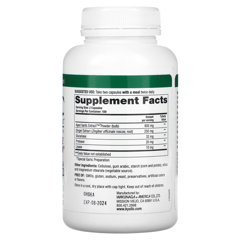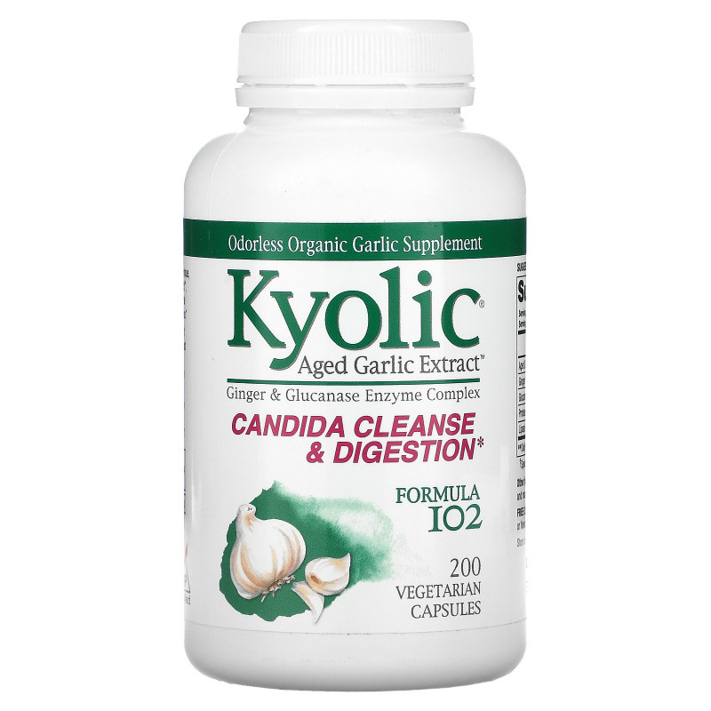 Kyolic, Формула 102, выдержанный экстракт чеснока, очищение от кандиды и улучшение пищеварения, 200 вегетарианских капсул