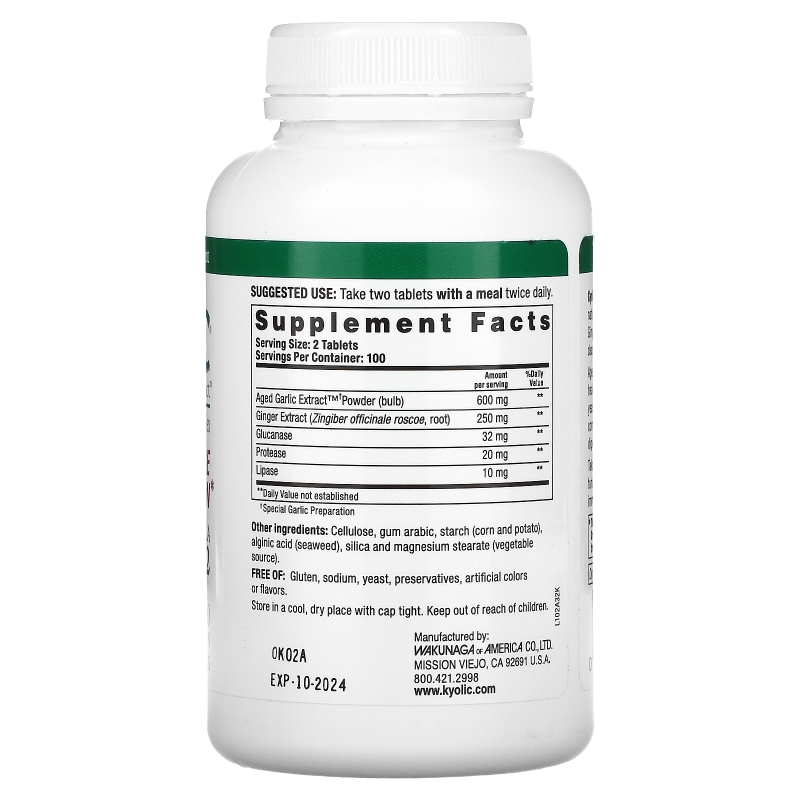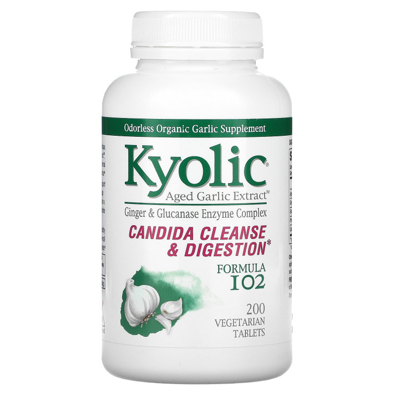 Kyolic, Формула 102, выдержанный экстракт чеснока, очищение от кандиды и улучшение пищеварения, 200 вегетарианских таблеток