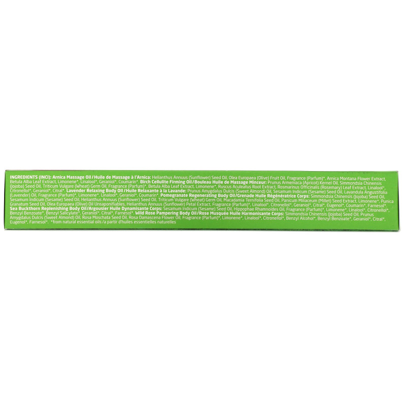 Для каждой части тела, начиная от пальцев на руках и заканчивая ступнями, необходимо разное масло. Поэтому этот набор масел для тела позаботиться о вас целиком. Этот набор подойдет вам независимо от того имеете ли вы сухую кожу, вам нужно сделать массаж, вы хотите уменьшить признаки старения или просто оживить свои чувства.