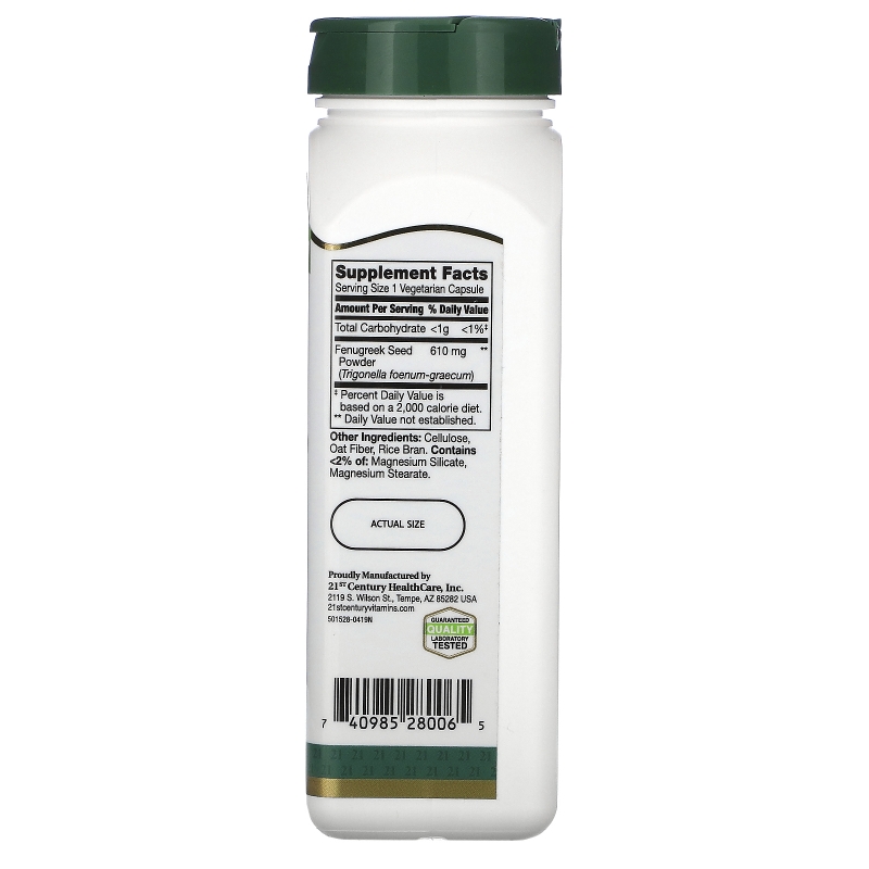 21st Century, Whole Herb Fenugreek, 610 mg, 100 Vegetarian Capsules